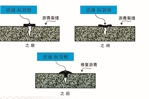 高强抗裂贴与裂缝结合的过程:
